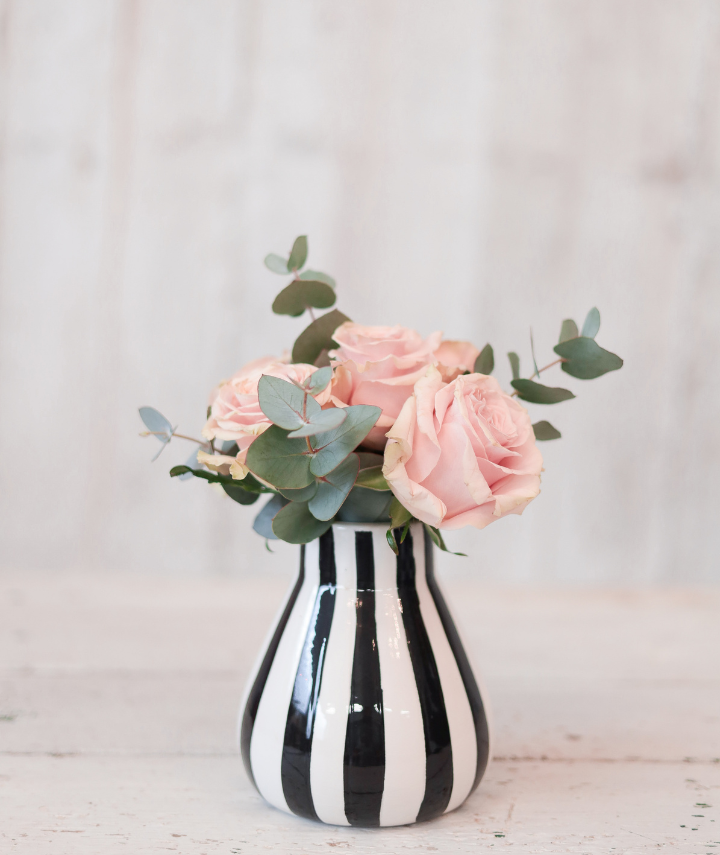 The Vase: A striking, hand-painted black and white striped ceramic vase that adds a bold, contemporary edge to any space.